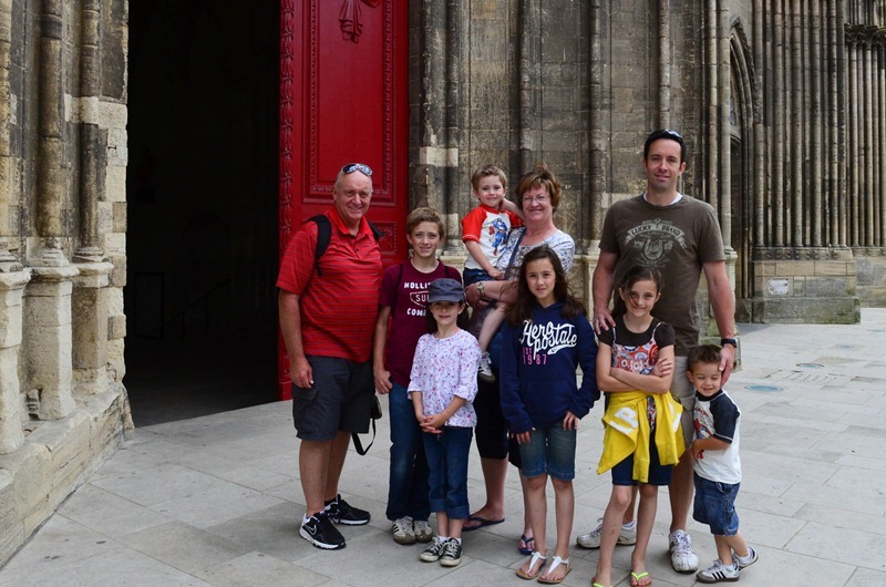 After viewing the tapestry we made our way to Bayeux’s Cathedral. Loved the red door. We grabbed sandwiches on the way our way out of town and ate in the van on the way to stop #2. (Chris and I are loving the long tuna sandwiches with tomato and egg inside these days. Yum)
