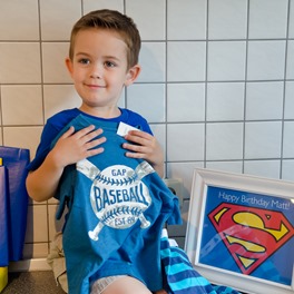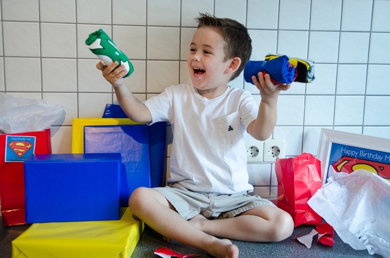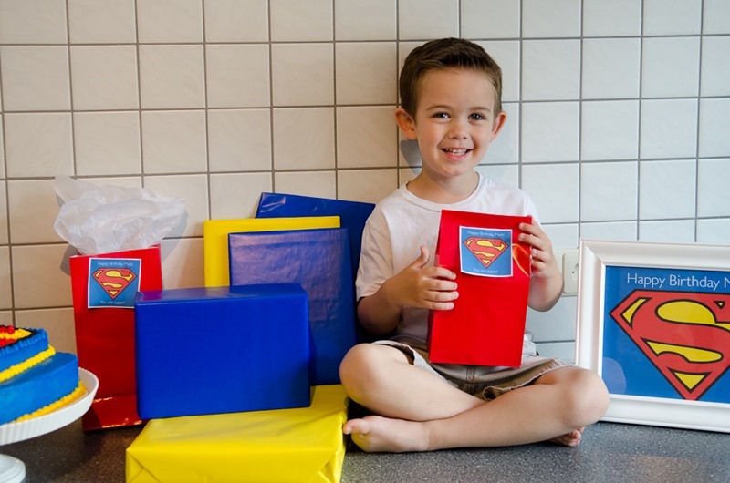 The first present Matt picked up was 3 Super Hero shirts. He was pretty excited.