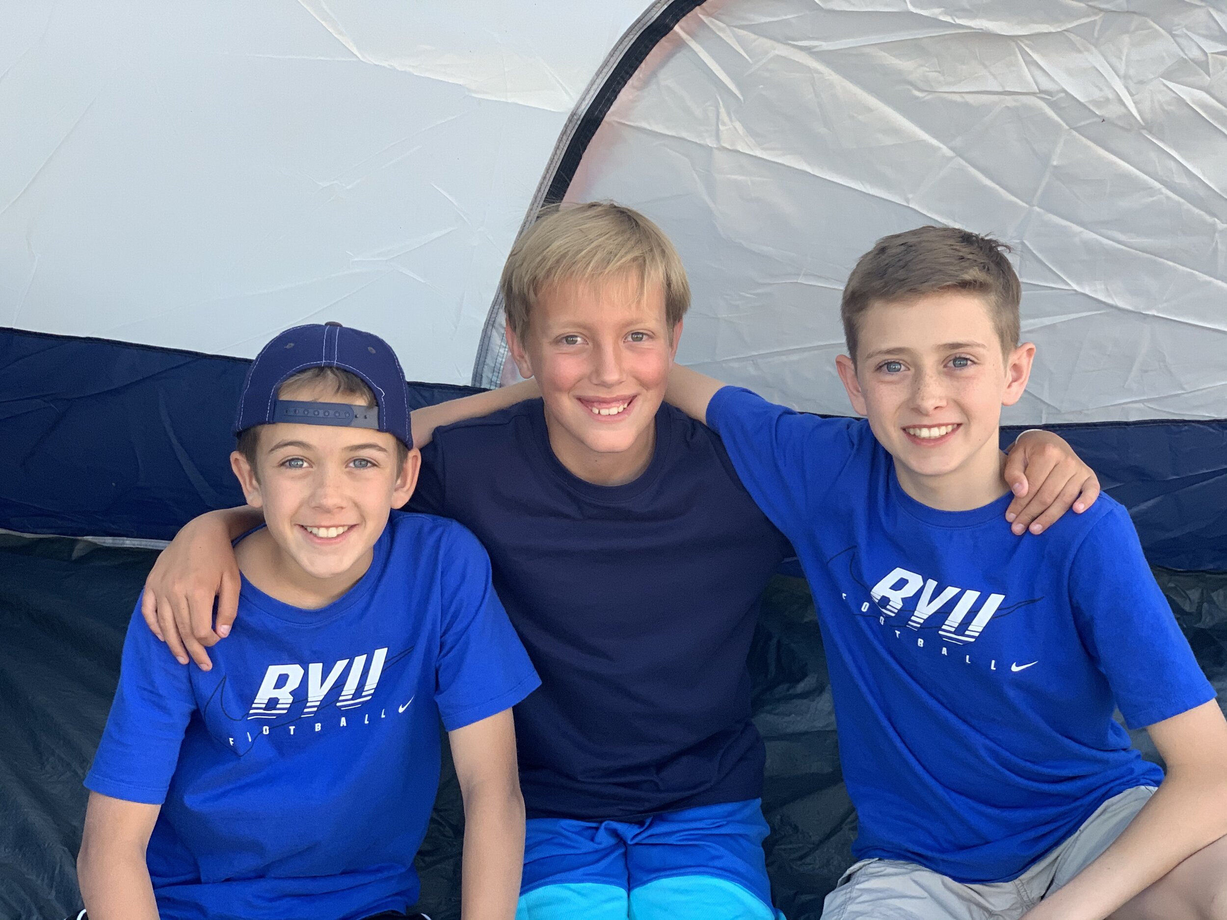 Luke, Matt and Derek spending the night in the tent outside.