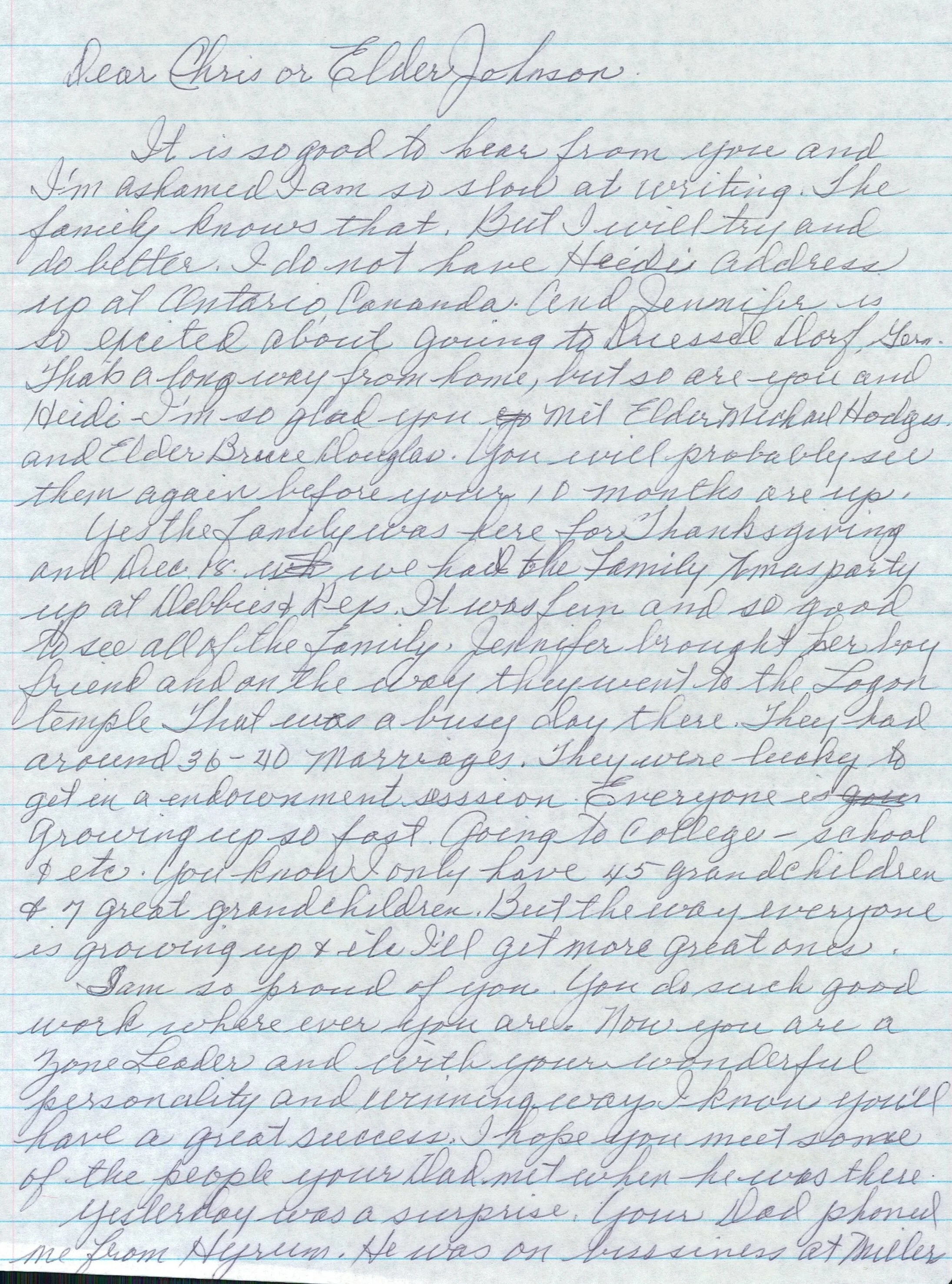 Delmar I have thought so much about you since we talked on the phone. Is there anything we can do to help? Would you like us to fast and pray for you? We want to do everything we can to help. I ask the kids if they remember you in their prayers and they seemed rather insulted to think that I’d ask because they said of course - all the time. If you want us to, let’s set a day that would benefit you the most. Our love and faith are with you always and I know our Heavenly Father’s love and protecting care are with you. I know he will watch over you all the time. Are you living on base or off? The time I tried to phone they said they had no way of getting hold of you because you were off base. I have wondered about this. Write and let us know what is bothering you and if we can help you in any way. We love you so much and want the very best for you. May the Lord continue to bless you in every way you need. We are so proud of you.